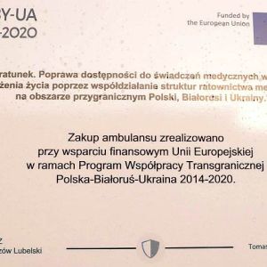 Samodzielny Publiczny Zespół Opieki Zdrowotnej w Tomaszowie Lubelskim w ramach realizacji projektu pn. „Na ratunek. Poprawa dostępności do świadczeń medycznych w stanach zagrożenia życia poprzez współdziałanie struktur ratownictwa medycznego na obszarze przygranicznym Polski, Białorusi i Ukrainy” w oparciu o Umowę nr PBU.03.01.00-06-0142/17-00 zakupił dwa ambulanse typu S wraz ze specjalistycznym wyposażeniem oraz systemem do telekardiologii.